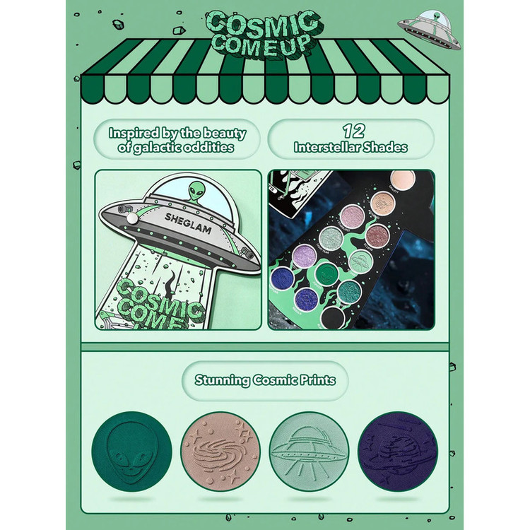 پالت سایه چشم Alien Mood با 12 سایه با جلوههای مات های کرمی و متالیک های پر زرق و برق است و هر سایه در این پالت دارای رنگدانه های بالایی است، به نرمی ترکیب می شود و به راحتی ظاهری عالی برای شما خلق میکند.