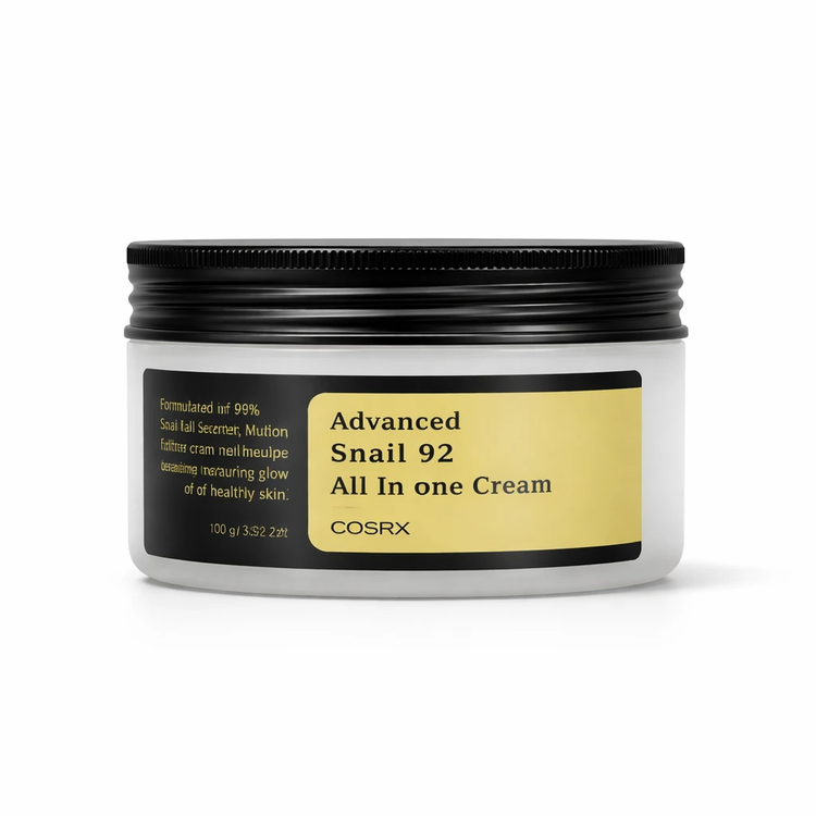 کرم حلزون COSRX Snail 92 با ترکیب 92٪ موسین حلزون، یک کرم چندکاره برای ترمیم، آبرسانی و بازیابی پوست است.