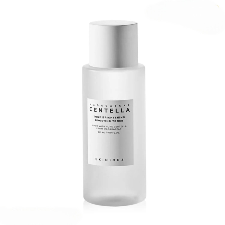 تونر Tone Brightening SKIN1004 با عصاره خالص سنتلا آسیاتیکا ماداگاسکار طراحی شده تا همزمان پوست را آرام، متعادل و شفافتر کند.