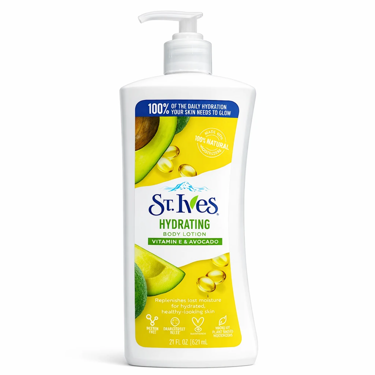 لوسیون بدن آبرسان Stives با ترکیب ویتامین E و عصاره آووکادو، برای تأمین رطوبت روزانه و حفظ نرمی پوست طراحی شده است.