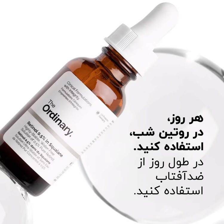 در مقایسه با فرمولهای مبتنی بر آب (مانند محلول رتینول خالص)، فرمولاسیون مبتنی بر اسکوالان روغن بیشتری دارد که میتواند احساس چربی بیشتری بدهد اما احتمال تحریک و قرمزی را به میزان قابل توجهی کاهش میدهد. استفاده از این محصول باید **منحصر به روتین شب** باشد.