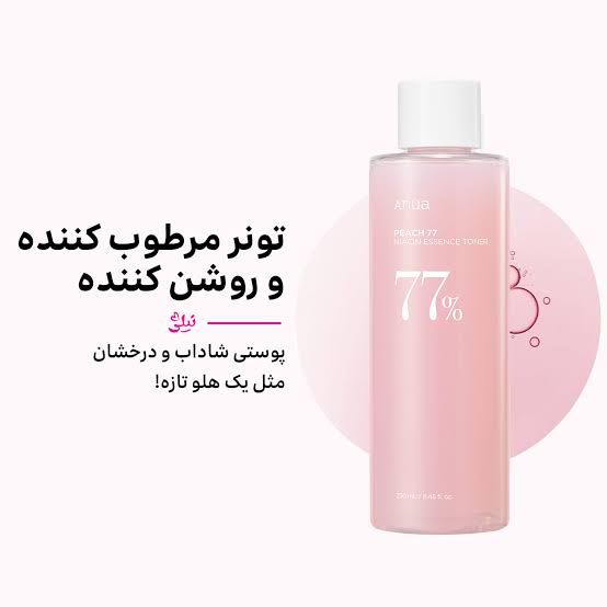 تونر اسنسی Anua Peach 77 از محبوبترین فرمولاسیونهای برند آنواست که با ترکیب ۷۷٪ عصاره طبیعی هلو و نیاسینامید طراحی شده تا لطافت، درخشش و شفافیت طبیعی پوست را بازگرداند.