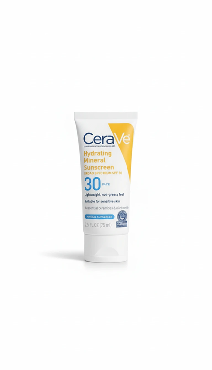 ضدآفتاب CeraVe Hydrating Mineral Sunscreen SPF 30 یک ضدآفتاب فیزیکی (مینرال) مخصوص صورت است که با ایجاد یک لایه محافظ روی پوست، از آن در برابر اشعههای مضر UVA و UVB محافظت میکند.