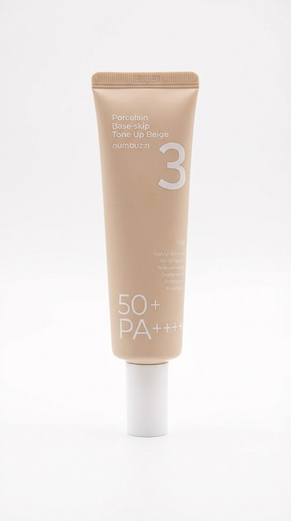 I ضدآفتاب تونآپ بژ نامبوزین Porcelain Base-skip شماره 3 SPF 50+ یک ضدآفتاب سبک با خاصیت اصلاح رنگ پوست است که علاوه بر محافظت بالا در برابر اشعههای UVA و UVB، به یکدست شدن و شفافتر شدن رنگ پوست کمک میکند.