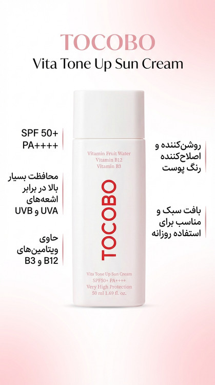 ضدآفتاب Vita Tone Up توکوبو انتخابی عالی برای افرادی است که علاوهبر محافظت بالا، به ظاهر نهایی پوست نیز اهمیت میدهند.